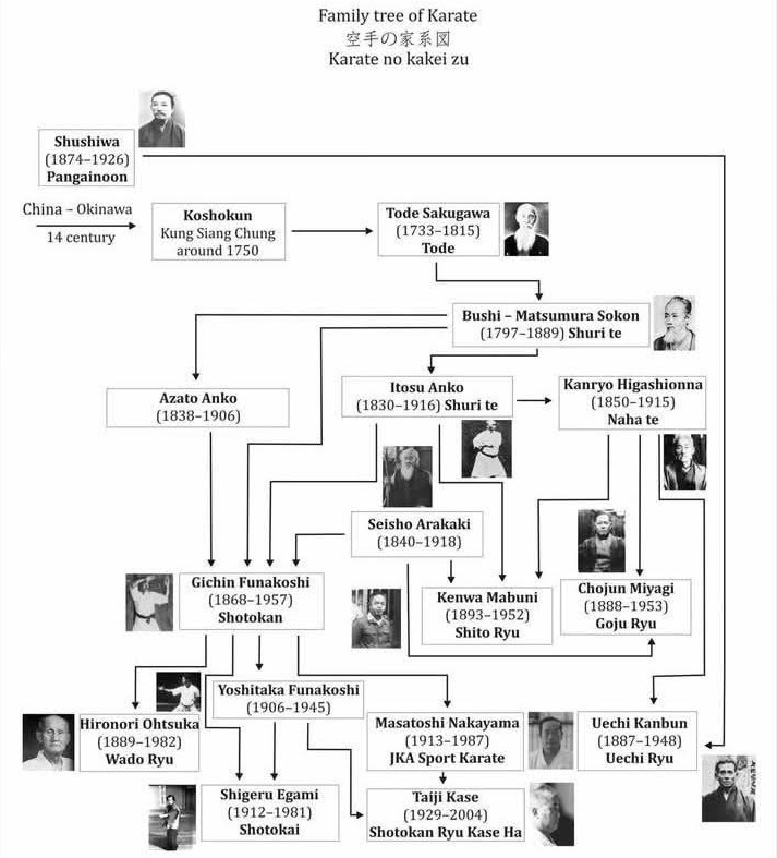 De wortels van karate gaan terug tot het oude Okinawa, waar een inheemse vechtkunst genaamd Te (手, “hand”) zich ontwikkelde onder invloed van Chinese krijgskunsten. Door de handelscontacten met China vanaf de 14e eeuw werden technieken uit het Shaolin Chuan Fa (Kung Fu) geïntroduceerd en vermengd met de Okinawaanse methoden. Dit leidde uiteindelijk tot de drie belangrijkste stijlen van Okinawaans karate: